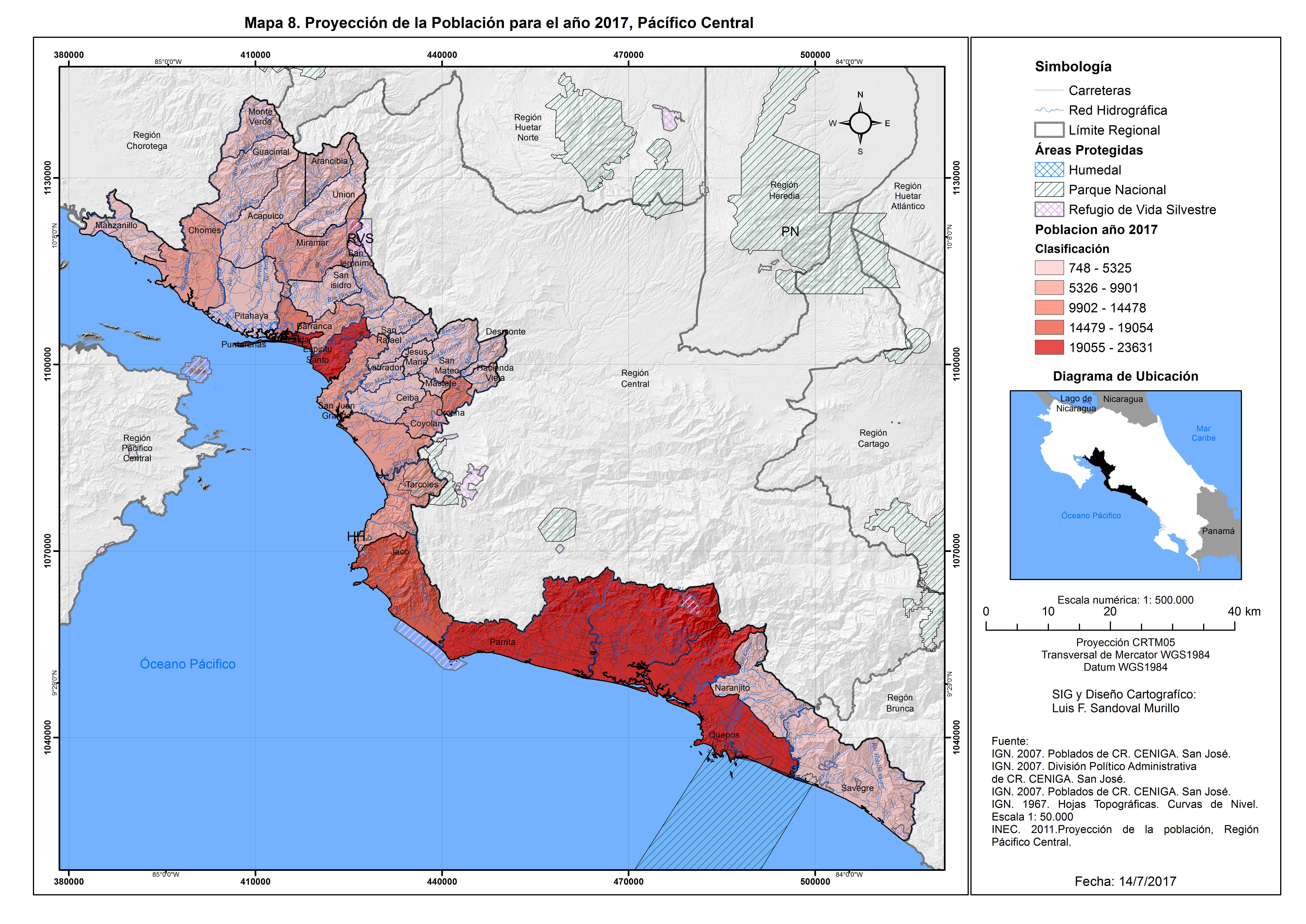 Proyección de la población para el año 2017, Pacífico Central, julio 2017
