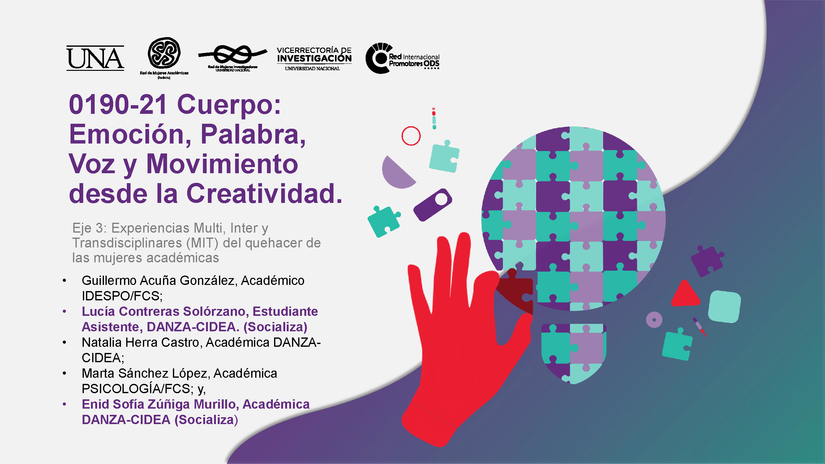 Al respecto, el proyecto CUERPO decidió participar en el eje 3: Experiencias Multi, Inter y Transdisciplinares (MIT) del quehacer de las mujeres académicas; de esta forma, con la participación protagónica de la Estudiante Asistente, Lucía Contreras Solórzano, que además cursaba el IV Nivel de la carrera de Bachillerato en Danza, presentamos las bases conceptuales transdisciplinares que sustentan el quehacer investigativo, extensionista y docente que desarrollamos.