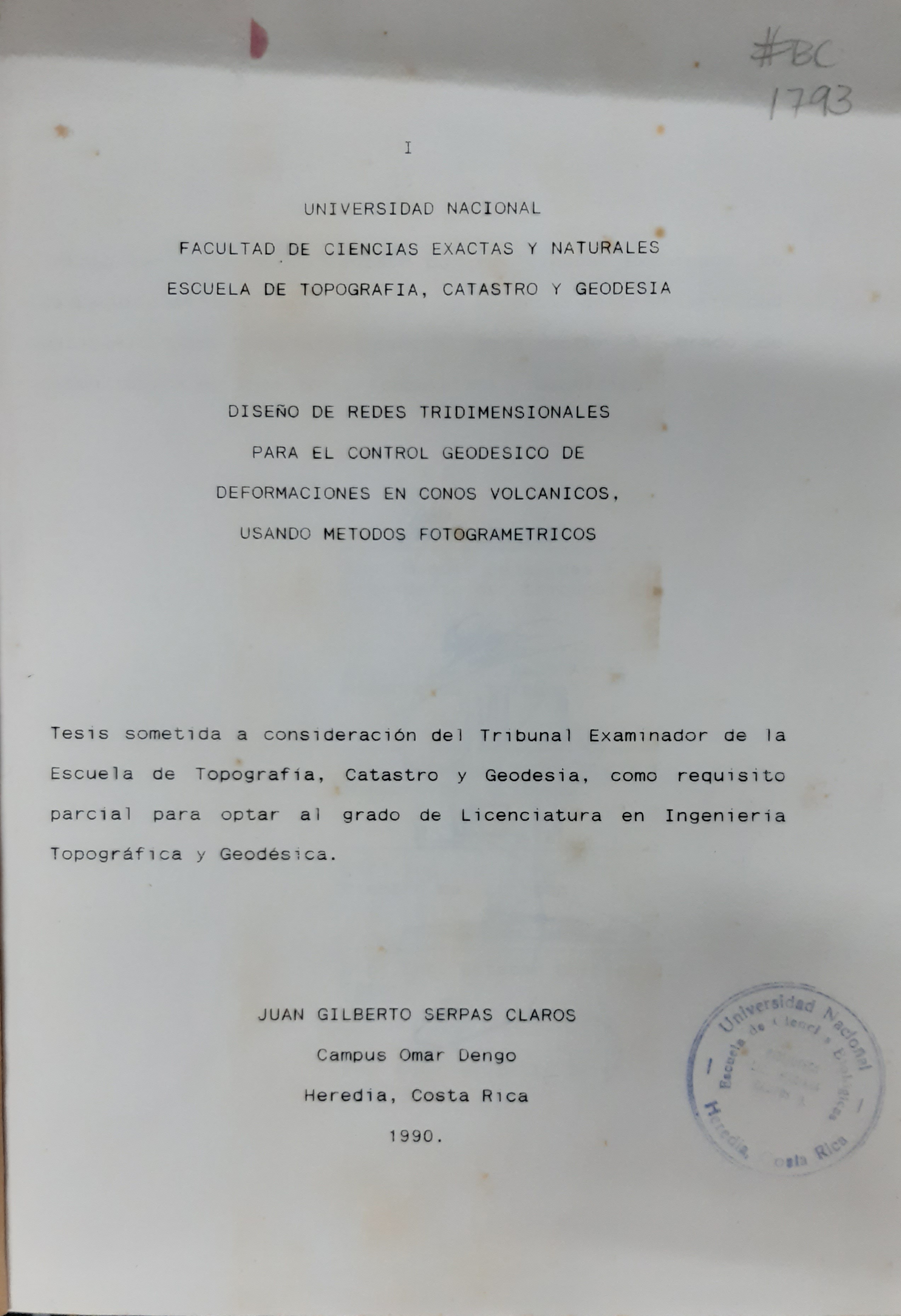 Serpas Claros, J. G. (1990). Diseño de redes tridimensionales para el control geodésico de deformaciones en conos volcánicos, usando métodos fotogramétricos. [Tesis de Licenciatura. Universidad Nacional, Costa Rica].