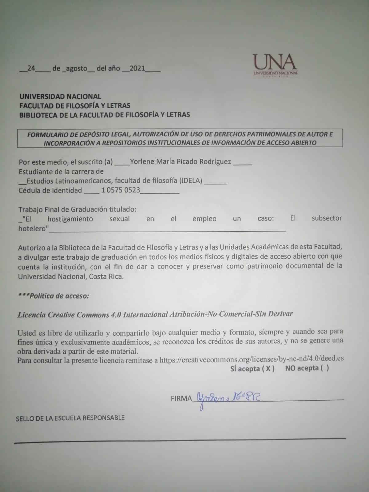 It analyzes the phenomenon of sexual harassment as a reality in the labor field of the Costa Rican tourism sector, and specifically in the hotel subsector, and the effect that the law may have on this problem. It also seeks to know the current status of the regulation of the Law against Sexual Harassment in employment and teaching, in the workplaces of the hotel subsector, as well as to determine the procedures used by the employer sector to address and process complaints and denunciations of sexual harassment. The study is descriptive in nature and one of the instruments used for data collection was the survey.