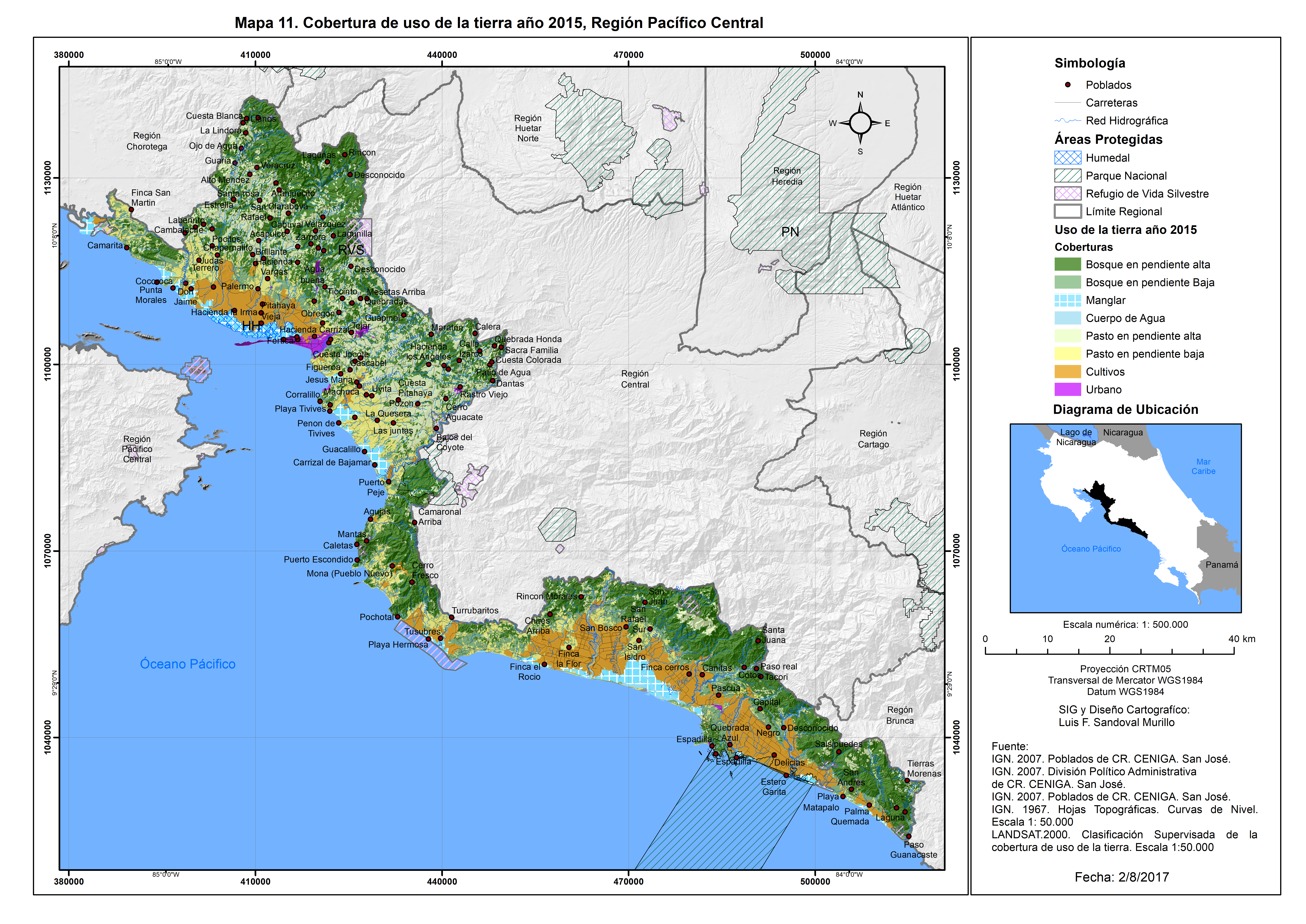 Cobertura de uso de la tierra año 2015, Región Pacífico Central