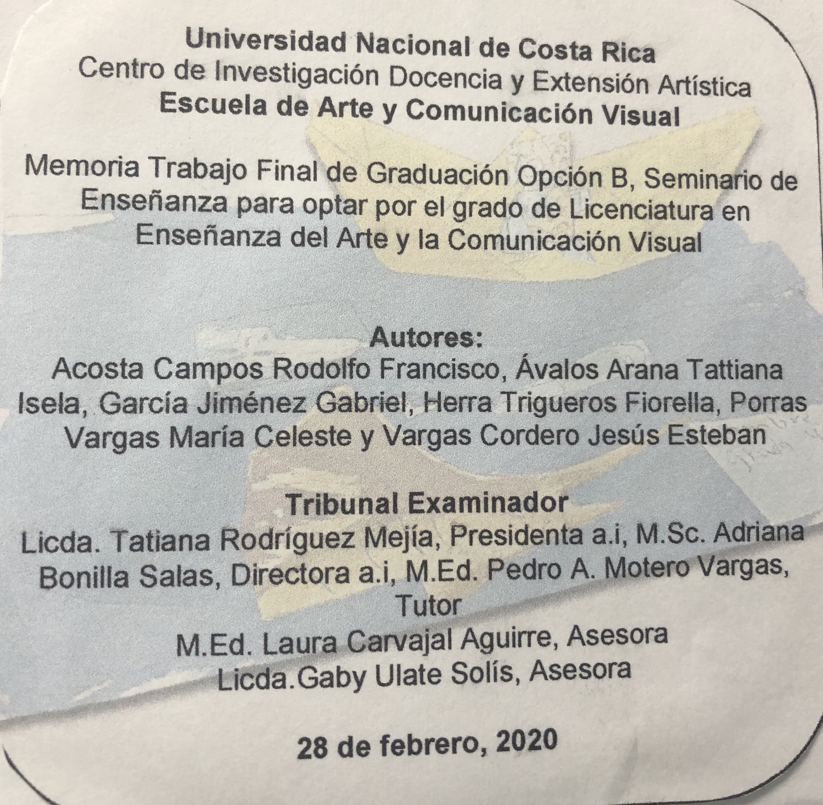 Memoria Programa Seminario Trabajo Final de Graduación, Opción B, Seminario de Enseñanza para optar por el grado de Licenciatura en Enseñanza del Arte y la Comunicación Visual.