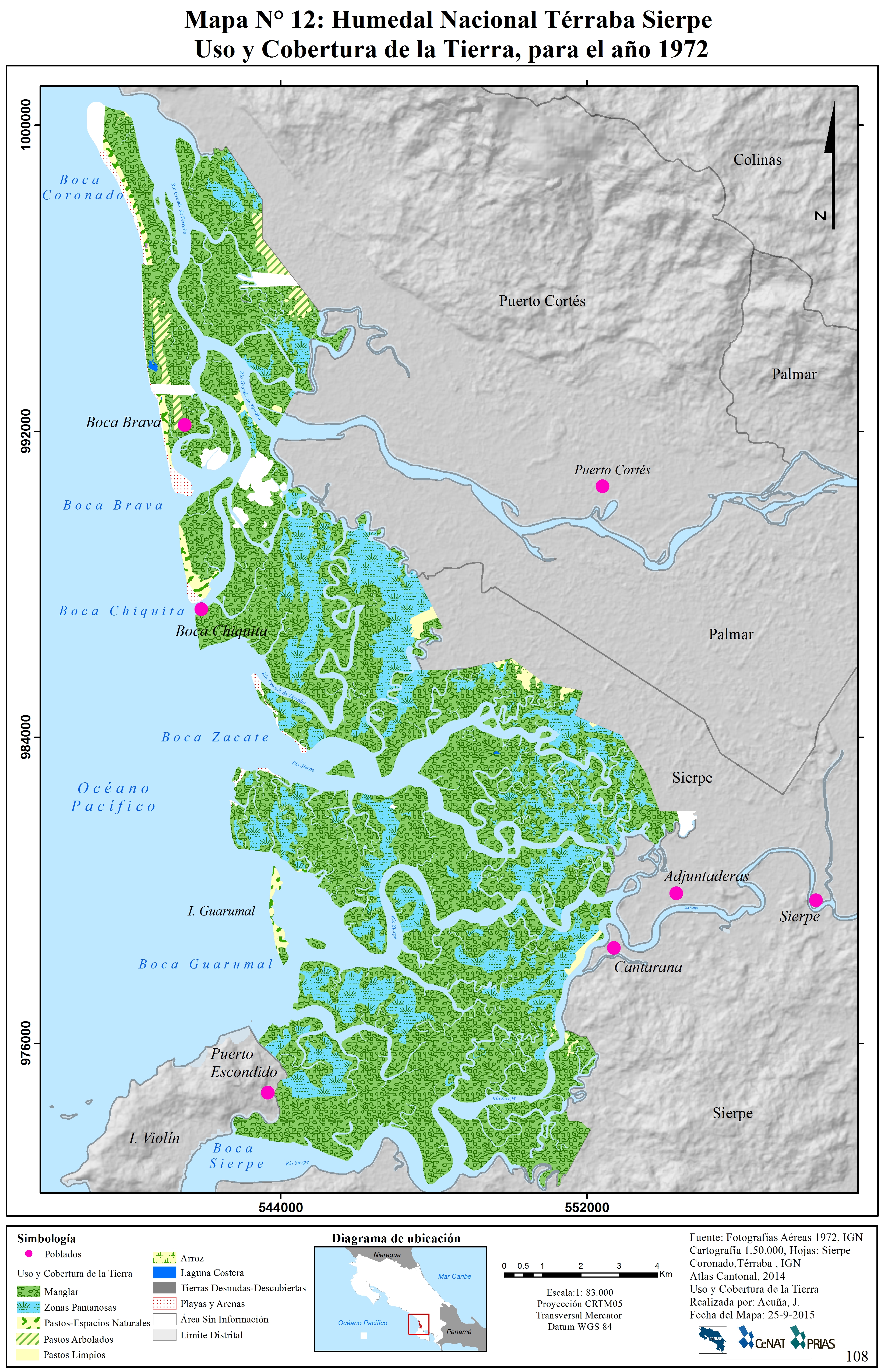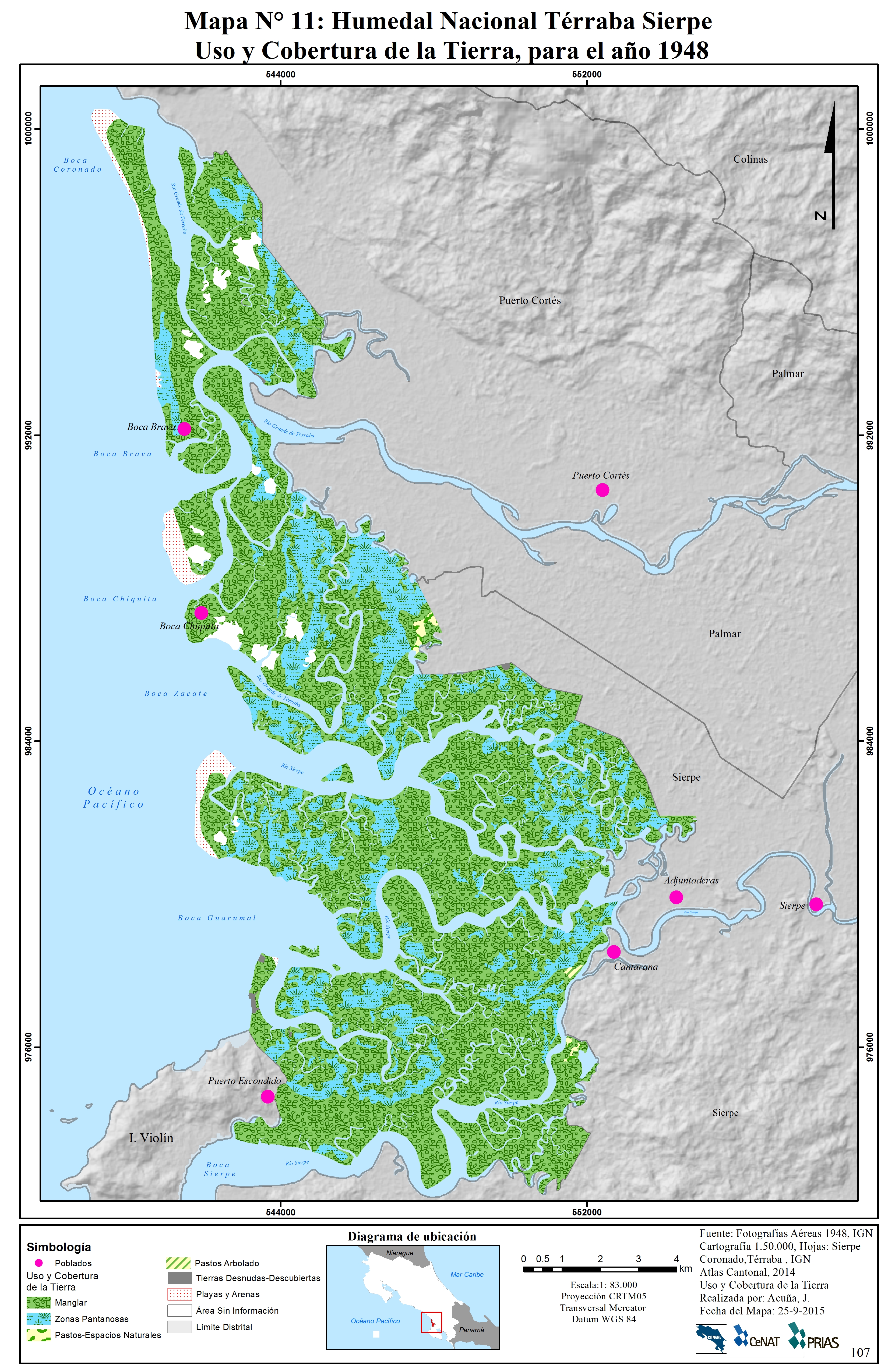 Análisis espacio-temporal de la evolución geomorfológica, los cambios en los usos y coberturas de la tierra así como la distribución del mangle en el Humedal Nacional Térraba Sierpe en el período de 1948-2012