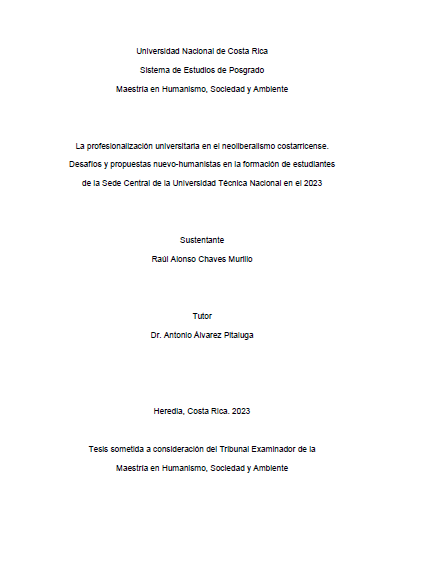 La profesionalización universitaria en el neoliberalismo costarricense. Desafíos y propuestas nuevo-humanistas en la formación de estudiantes de la Sede Central de la Universidad Técnica Nacional en el 2023