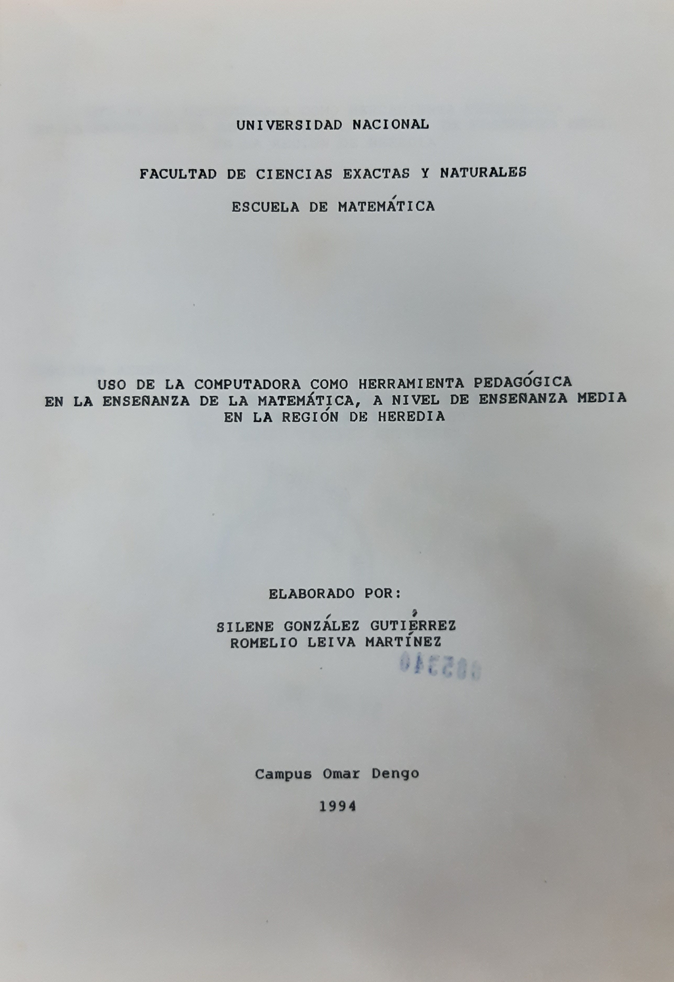 González Gutiérrez, S. y Leiva Martínez, R. (1994). Uso de la computadora como herramienta pedagógica en la enseñanza de la matemática, a nivel de enseñanza media en la Región de Heredia. [Tesis de Licenciatura. Universidad Nacional, Costa Rica].