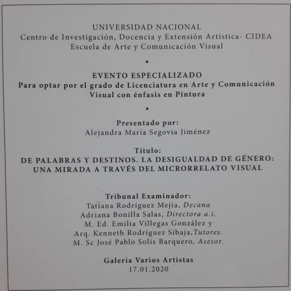 | dc.description | Memoria final del Evento Especializado para optar por el grado de Licenciatura en Arte y Comunicación Visual con Énfasis en Pintura. | es_ES |