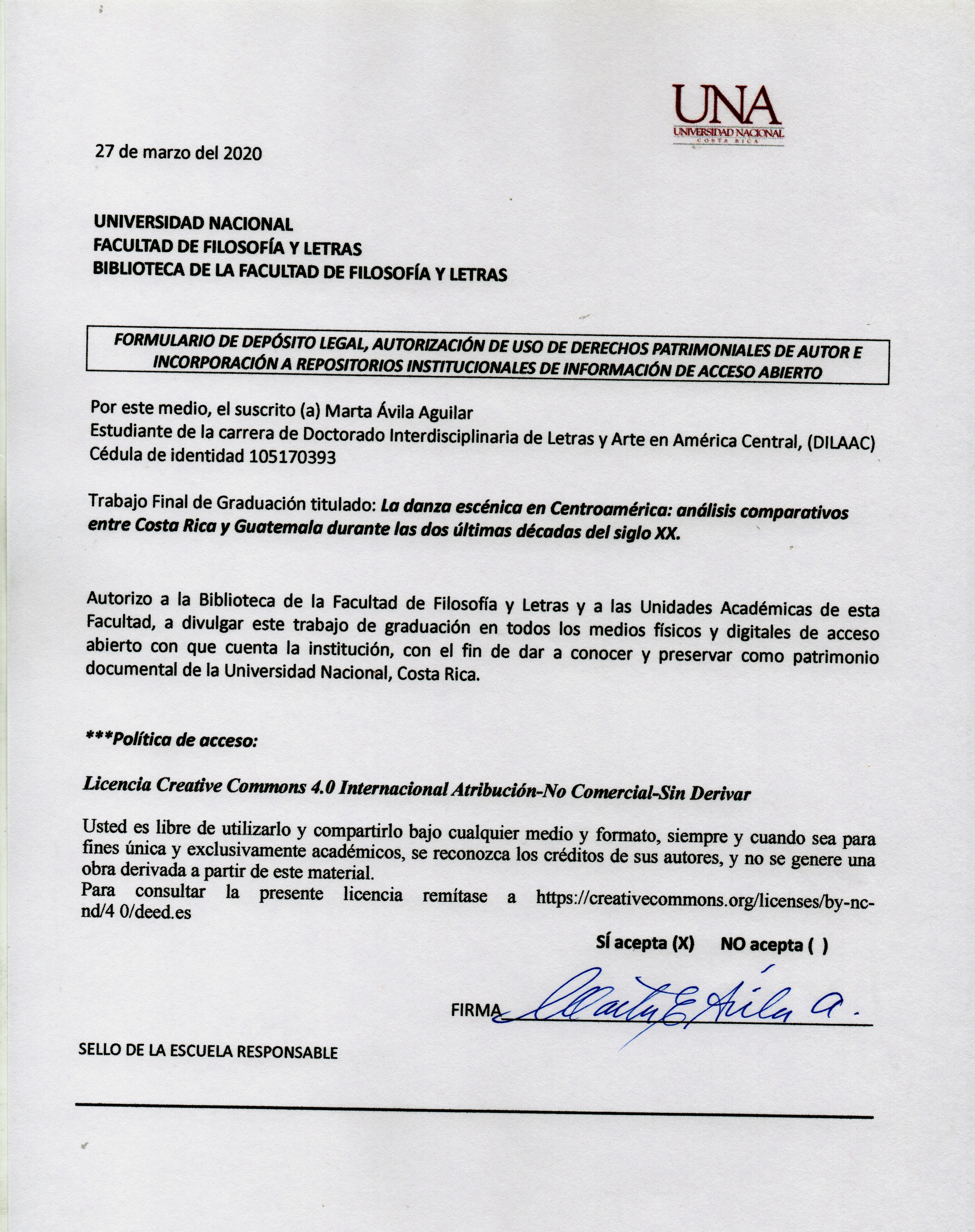 La danza escénica en Centroamérica análisis comparativo entre Costa Rica y Guatemala durante las últimas décadas del siglo XX.