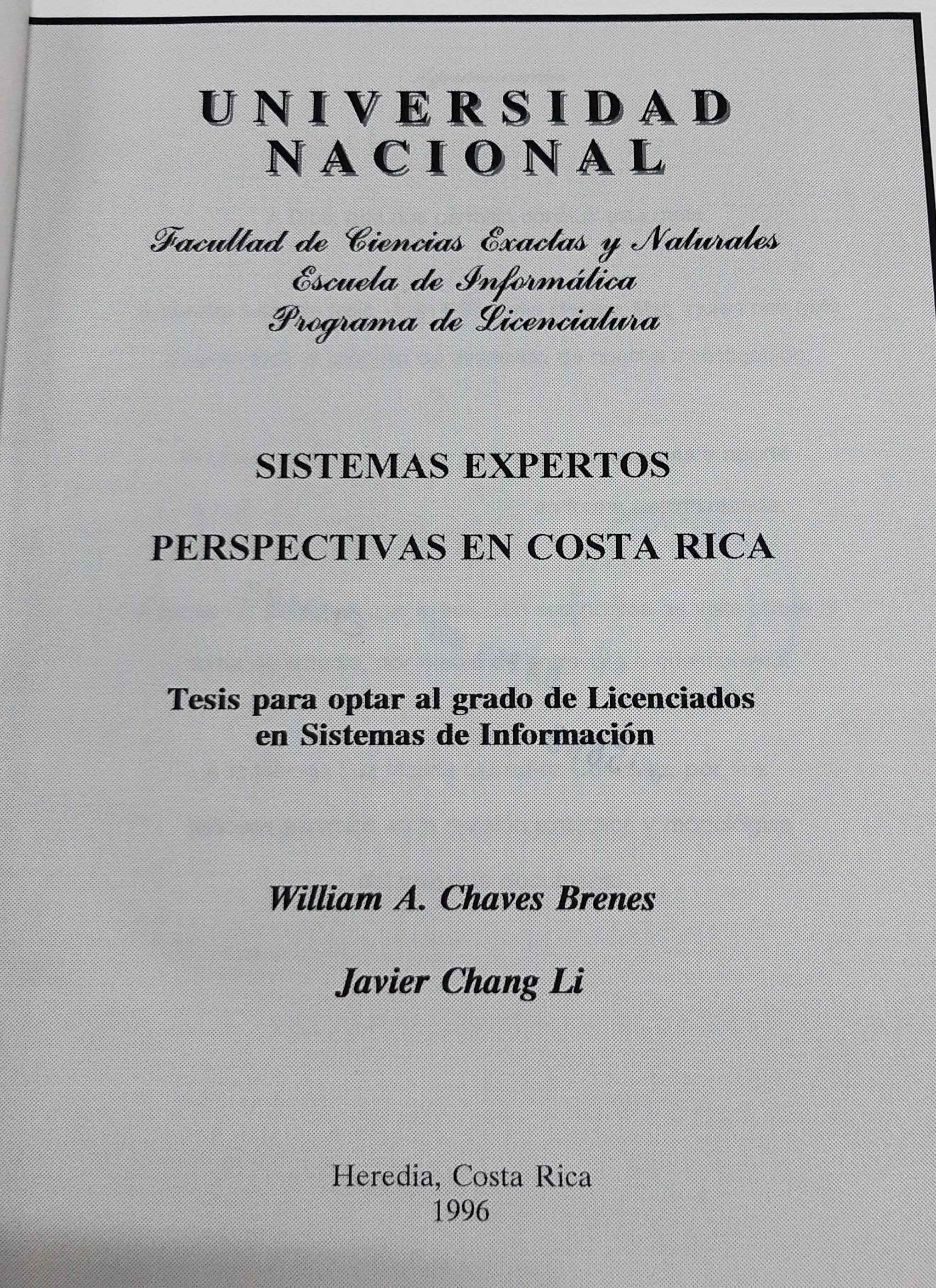 | dc.description | Chang, J. y Chaves, W. (1996). Sistemas expertos: perspectiva en Costa Rica. [Tesis de Licenciatura]. Universidad Nacional, Heredia, Costa Rica. | es_ES |