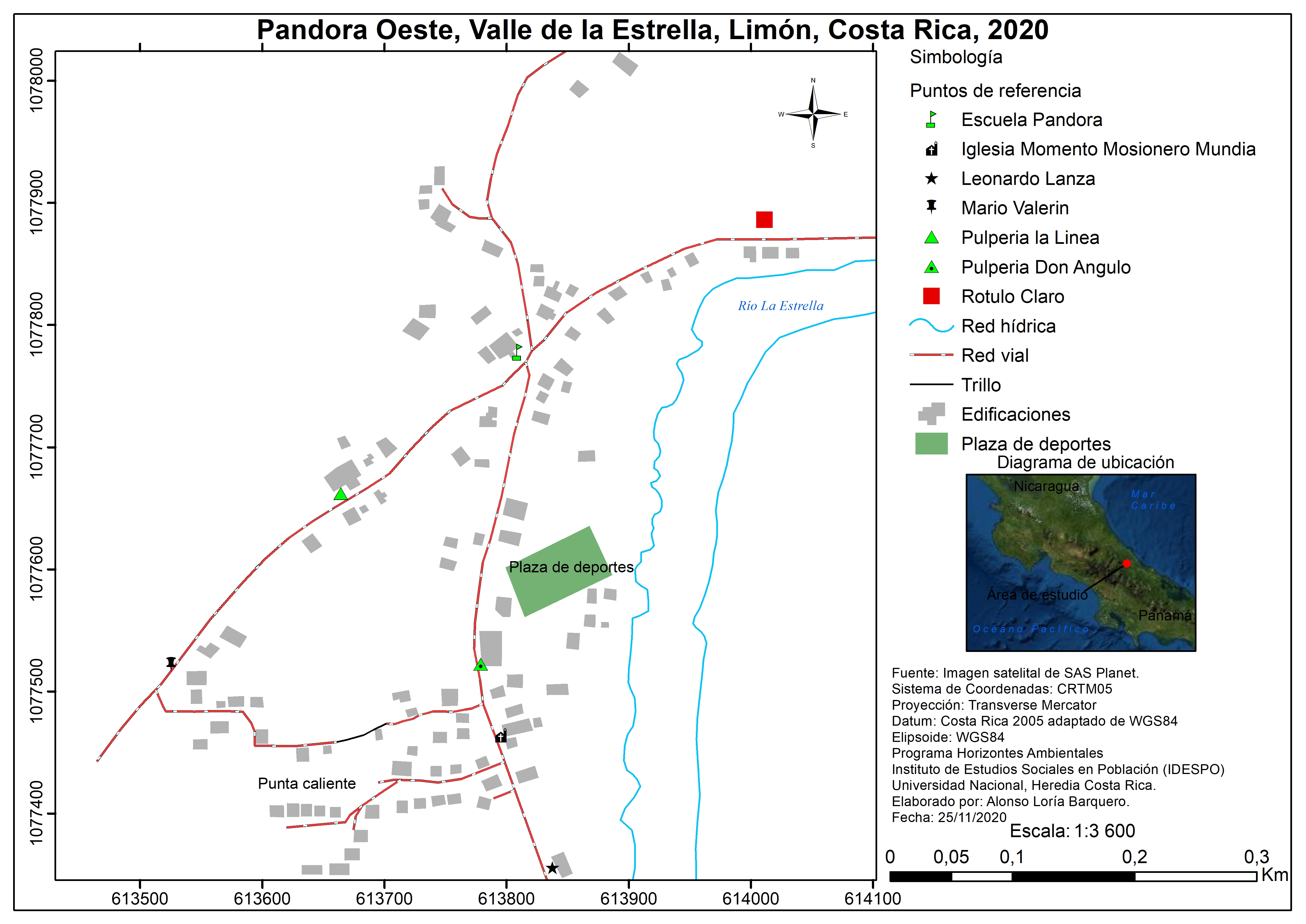 Mapa Pandora Oeste, Valle la Estrella, Limón, Costa Rica 2020